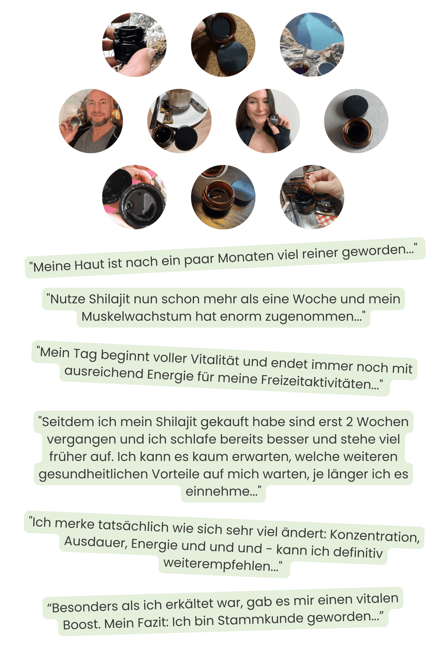 Shilajit enthält eine breite Palette von aktiven Nährstoffen, darunter Spurenelemente, Vitamine, Aminosäuren und Phospholipide, die vom Körper optimal aufgenommen werden. Diese einzigartige Mischung bietet viele Vorteile, einschließlich der Unterstützung von Energie, Ausdauer, Gedächtnis und allgemeinem Wohlbefinden.